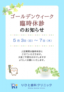 ◆ゴールデンウィーク休診日のお知らせ